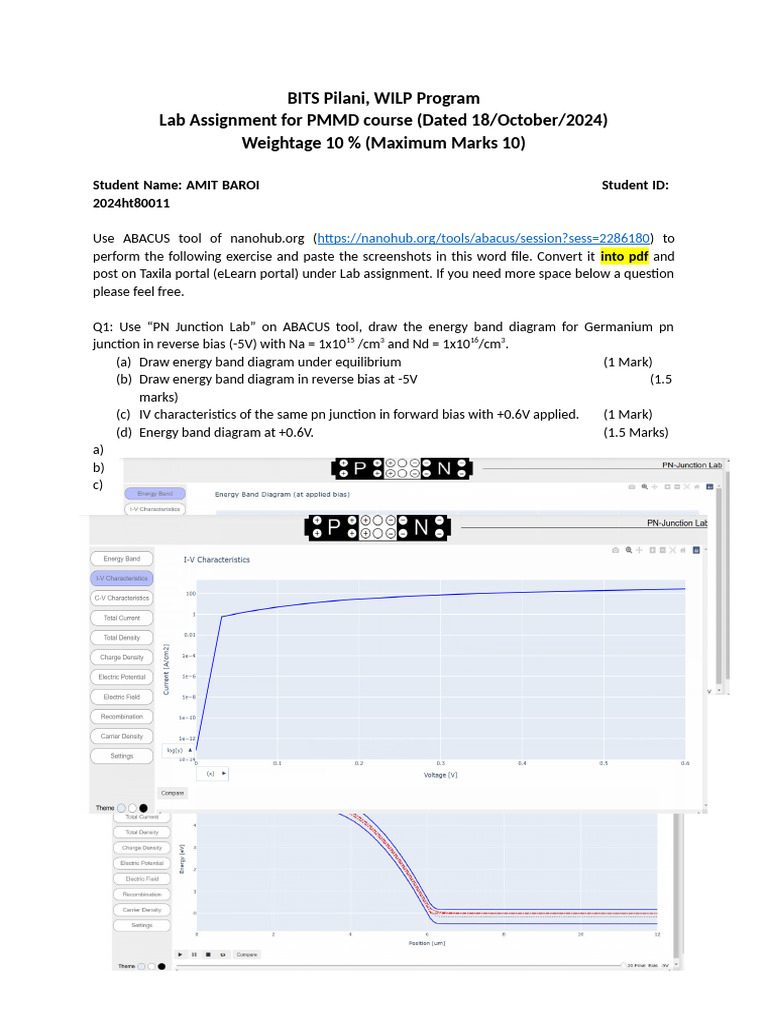 Q1: Use “PN Junction Lab” on ABACUS tool, draw the energy band diagram for Germanium pn