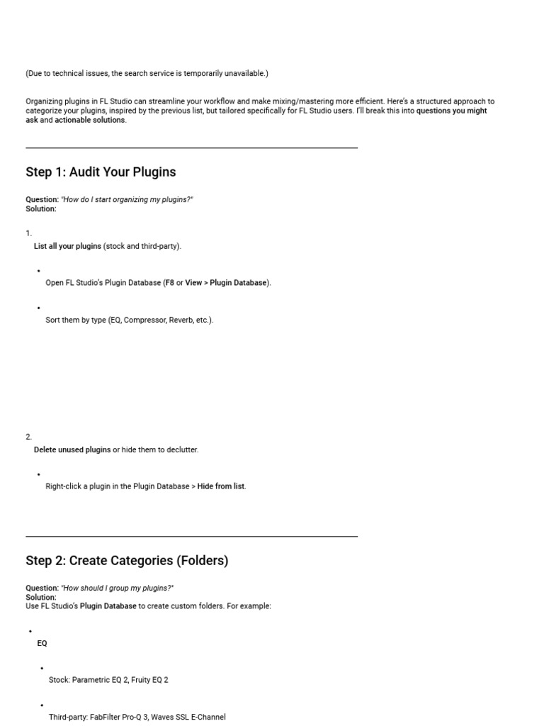 categorize your plugins, inspired by the previous list, but tailored specifically for FL Studio users. I’ll break this into questions you might