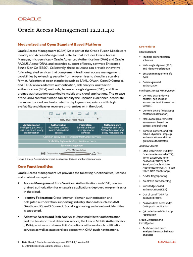 1 Data Sheet / Oracle Access Management 12.2.1.4.0 / Version 1.0