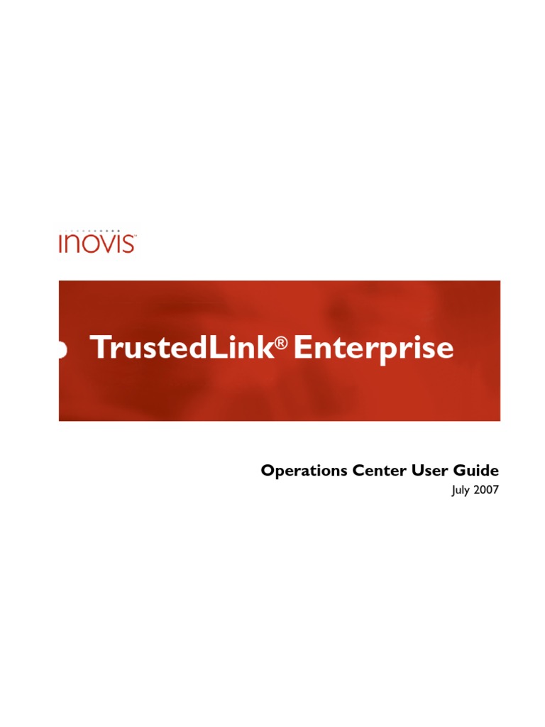 TrustedLink Enterprise Operations Center User Guide Document Release Date: 13 July 2007 Software Release: 6.1.1 Product Support: U.S.1.877.446.6847 (1.877.4INOVIS); EMEA1+44 (0)1483 569388 For International support outside EMEA, call +1 404.467.3806 2007 Inovis, Inc. All rights reserved.