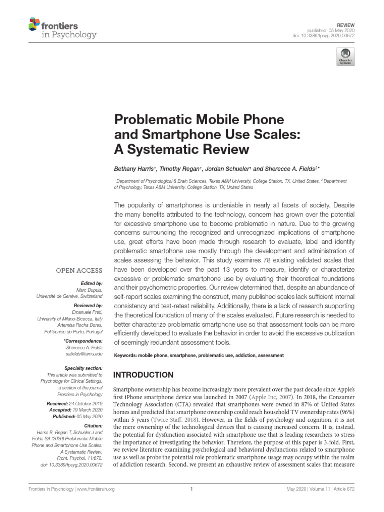 mobile phone addiction tendency scale for college students. Chine. Ment. Health Copyright © 2020 Harris, Regan, Schueler and Fields. This is an open-access article