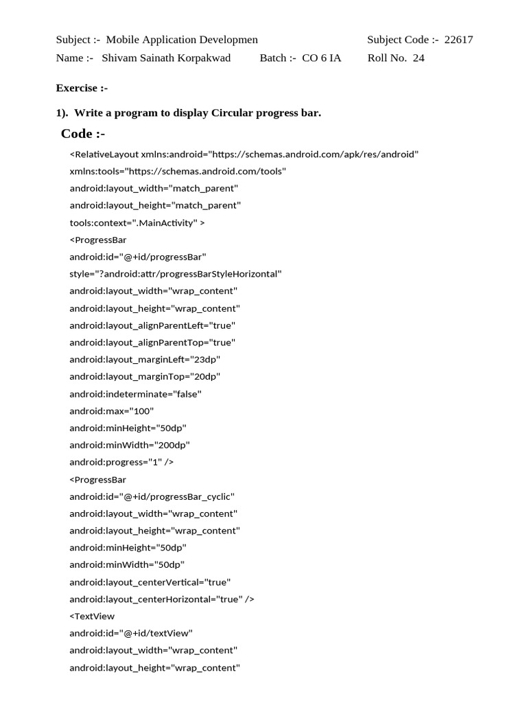Subject :- Mobile Application Developmen Subject Code :- 22617