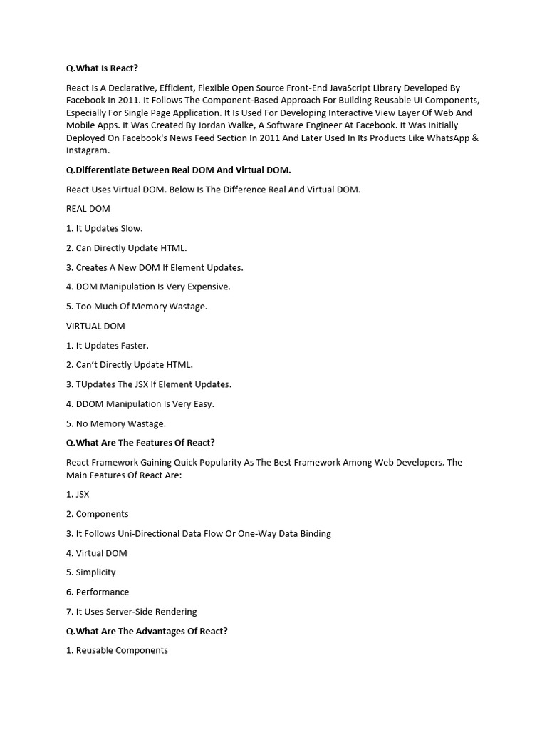 React Uses Virtual DOM. Below Is The Difference Real And Virtual DOM.