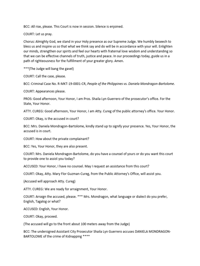 COURT: Mrs. Daniela Mondragon-Bartolome, do you have a counsel of yours or do you want this court
