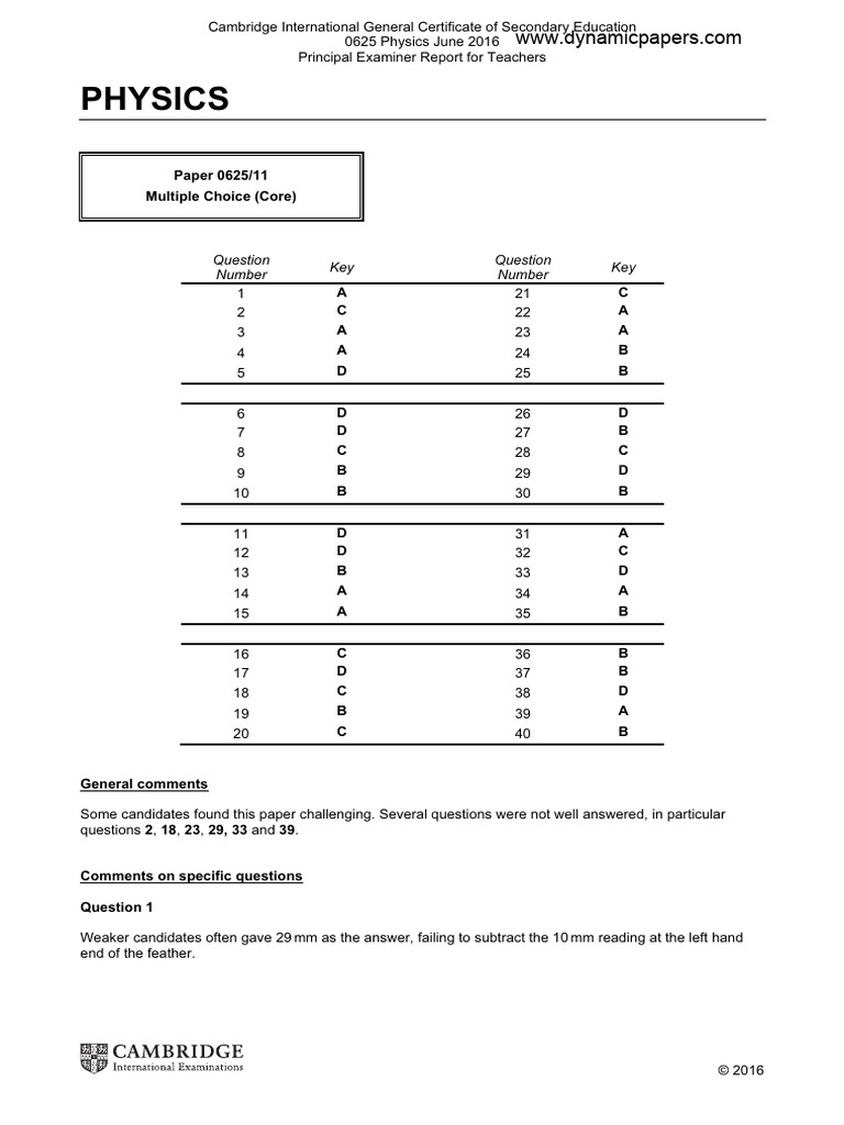 particular problems being experienced with questions 5, 16, 17, 32 and 33. Question 2 was particularly well