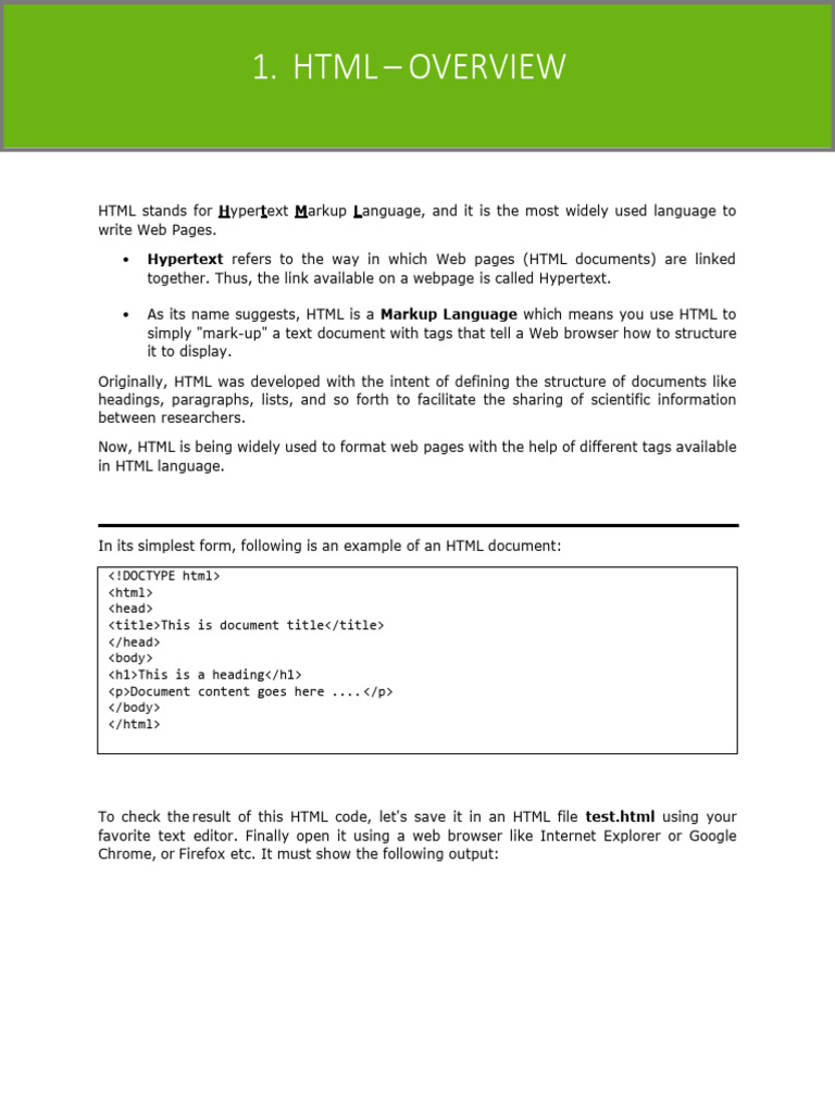 To check the result of this HTML code, let's save it in an HTML file test.html using your