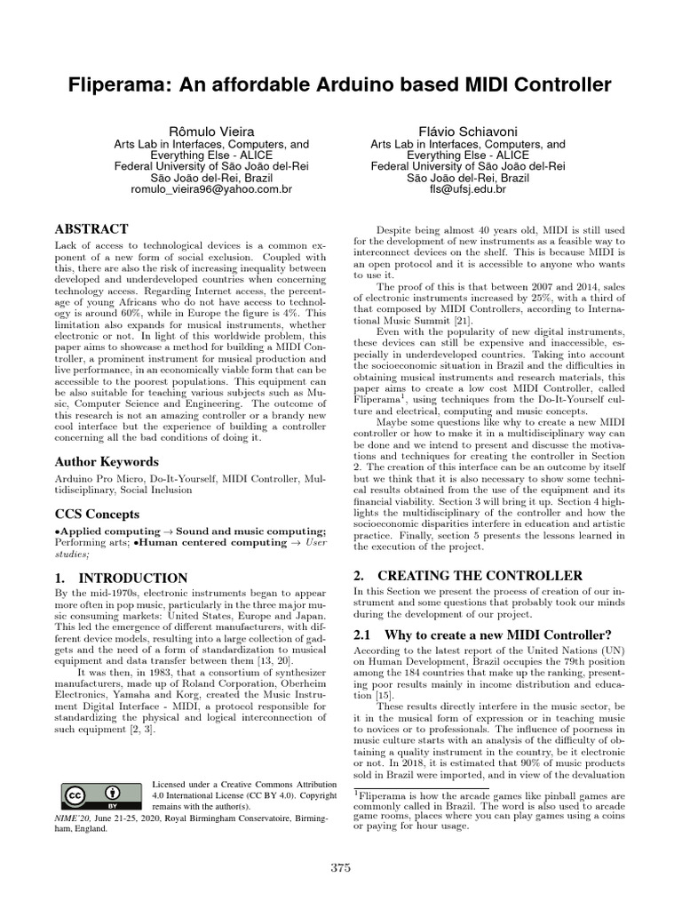 Arduino Pro Micro, Do-It-Yourself, MIDI Controller, Mul- but we think that it is also necessary to show some techni-