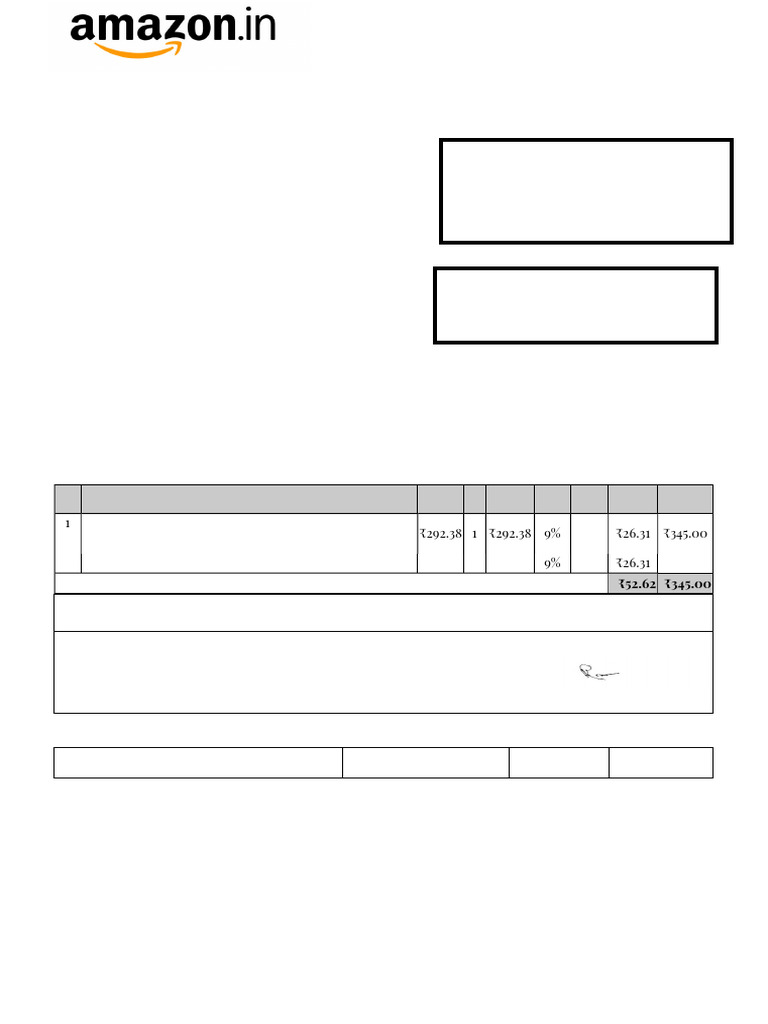B07F38B4W9 ( B07F38B4W9 ) ₹292.38 1 ₹292.38 9% CGST ₹26.31 ₹345.00