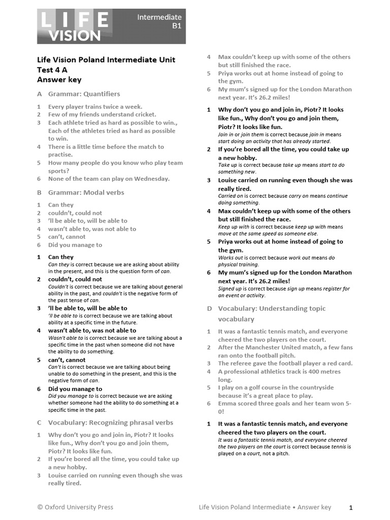 © Oxford University Press Life Vision Poland Intermediate • Answer key 1