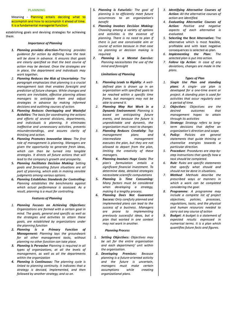paragraph emphasizes that planning is a crucial 1. Planning Leads to Rigidity: A well- 1. Single Use Plan and standing