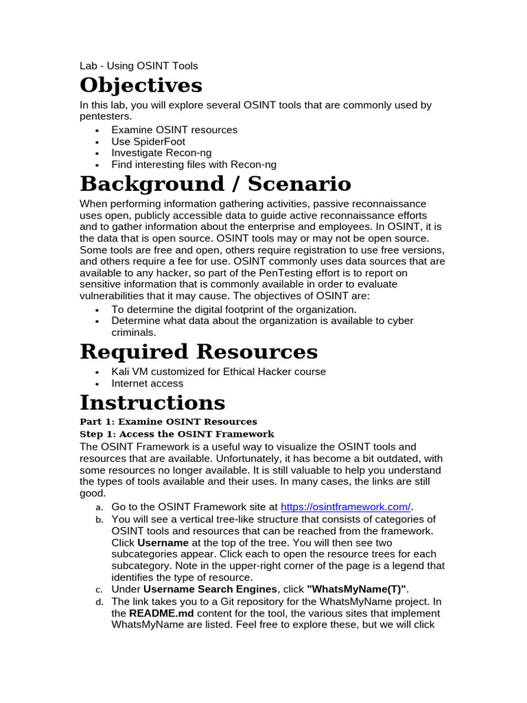 a. Go to the OSINT Framework site at https://osintframework.com/.