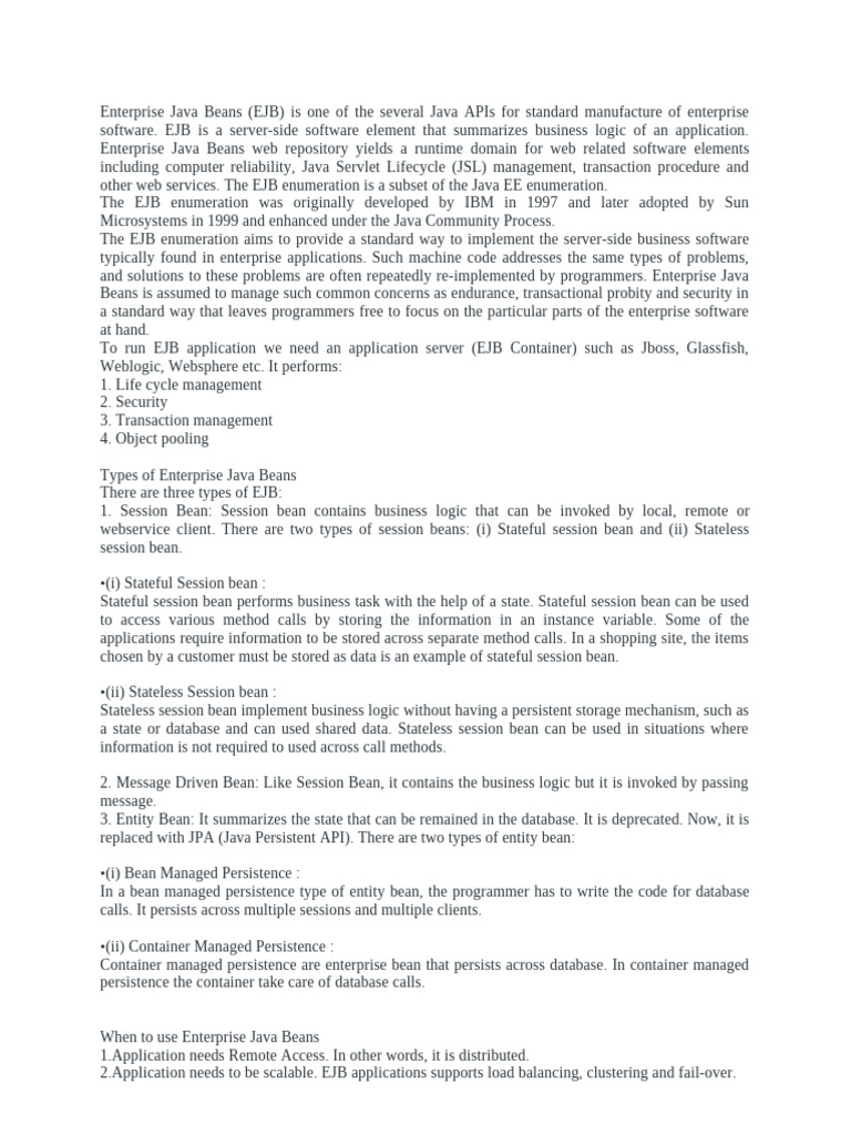 business performance. Enterprise JavaBeans are intended to handle such frequent concerns as