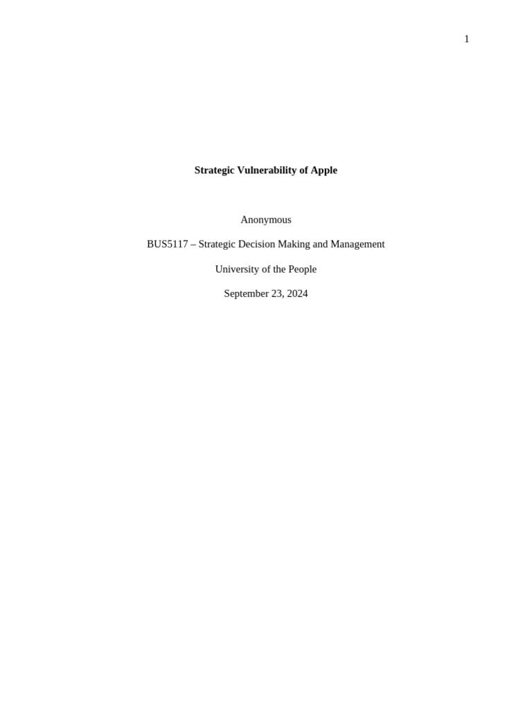 on the two analyses Apple’s strategic vulnerability is evaluated and two actions proposed to