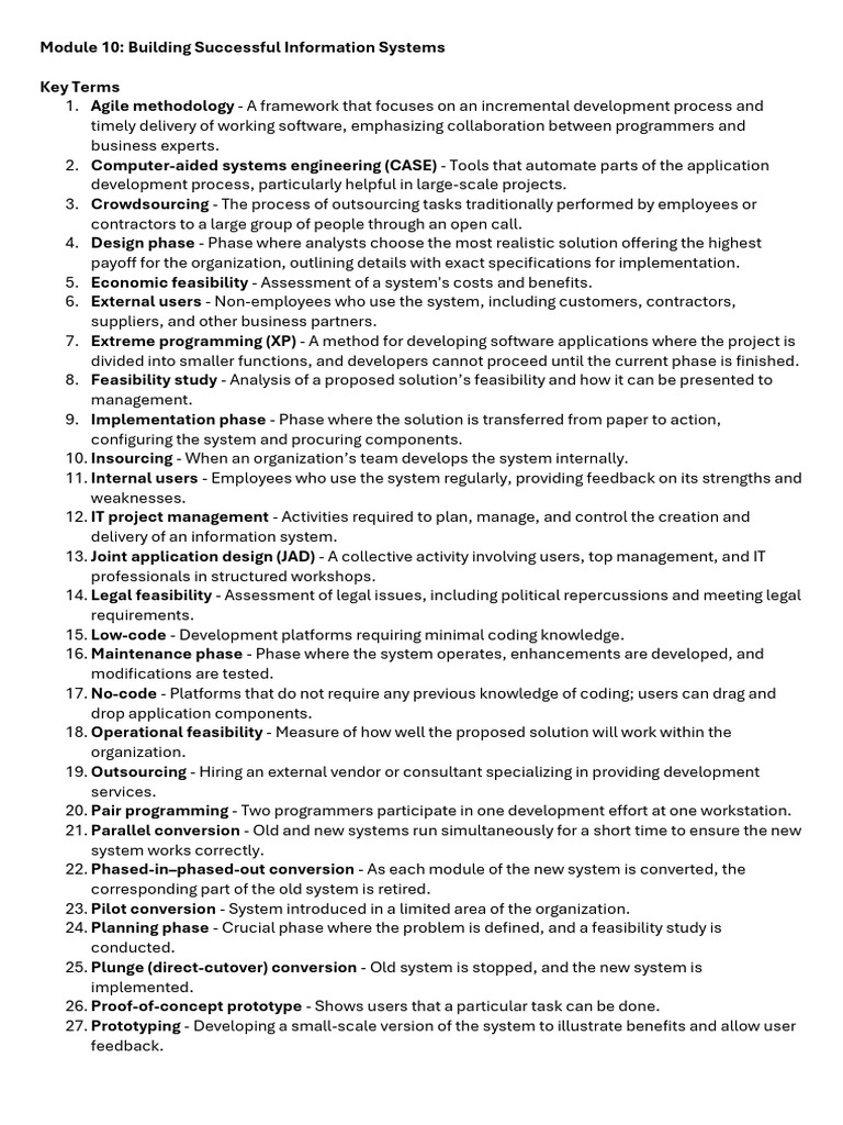 • Conversion methods include parallel, phased-in–phased-out, pilot, and plunge