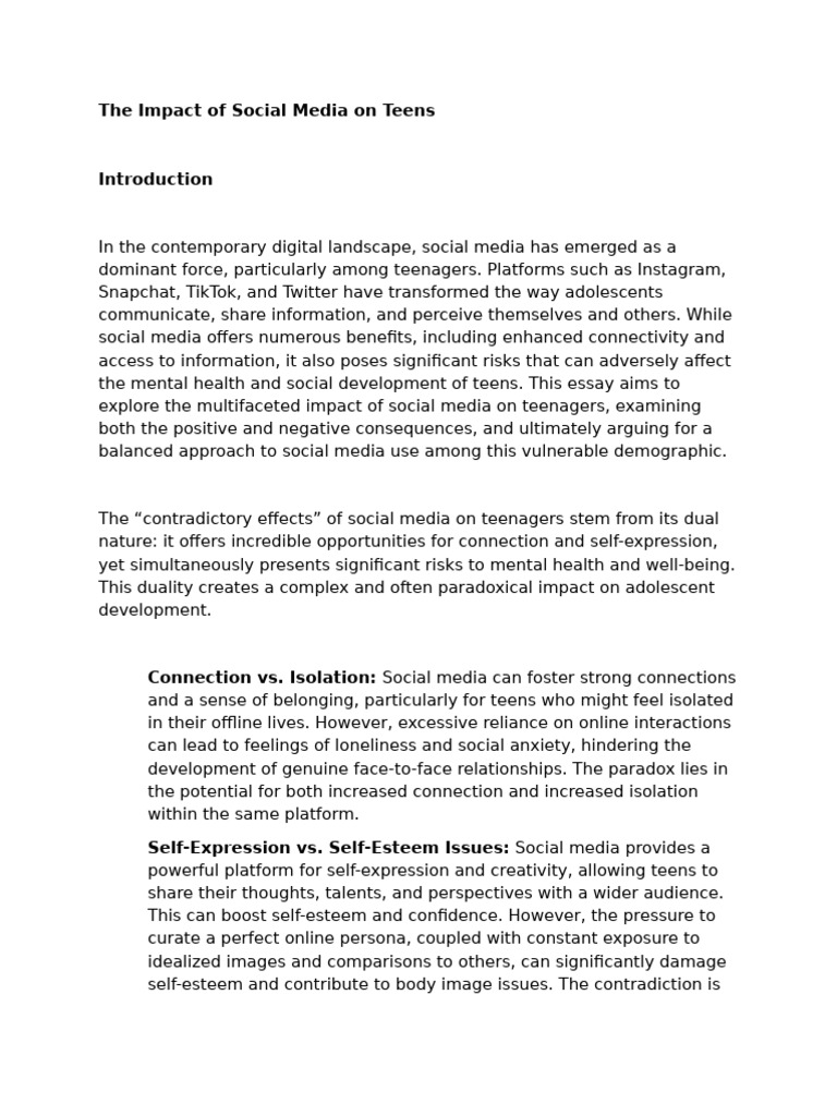 health issues, cyberbullying, and sleep disturbances. The essay discusses the