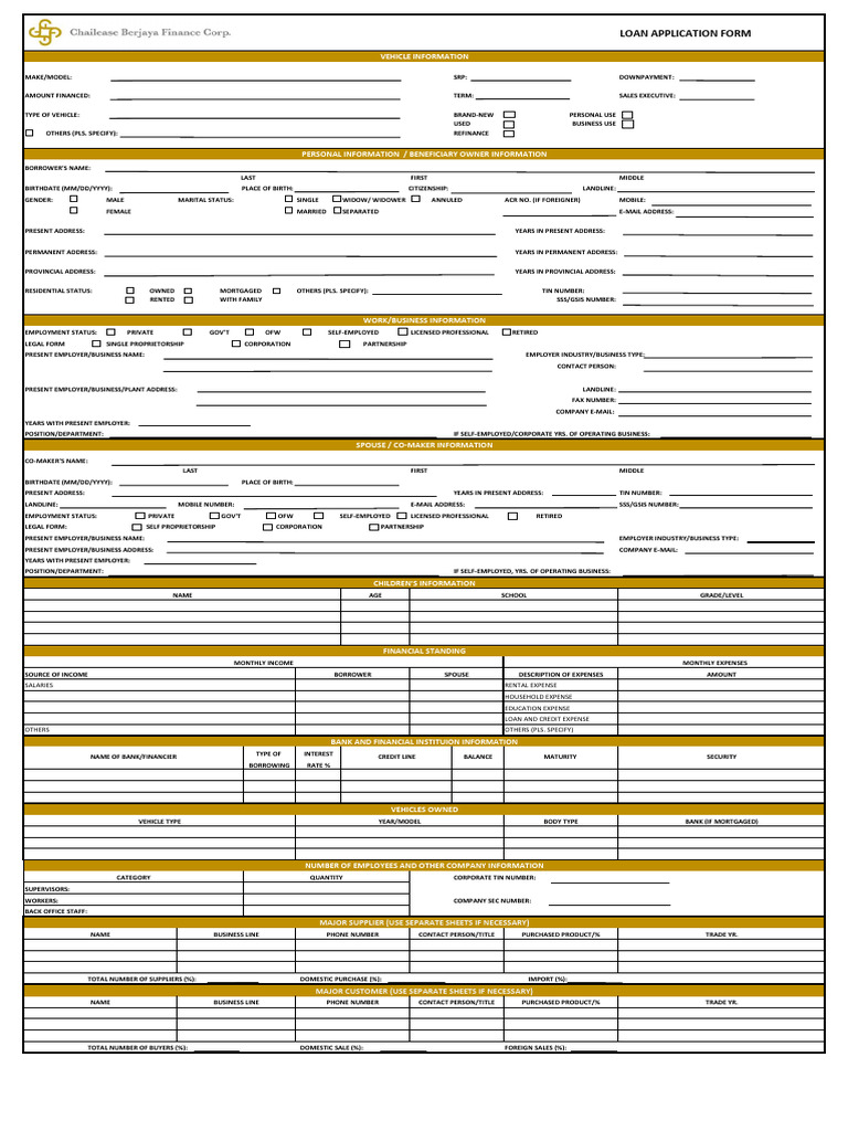 his authorized representative’s provision of any information which is not true or updated may cause Chailease Berjaya Finance Corporation (CBFC) to reject the Borrower's loan application or