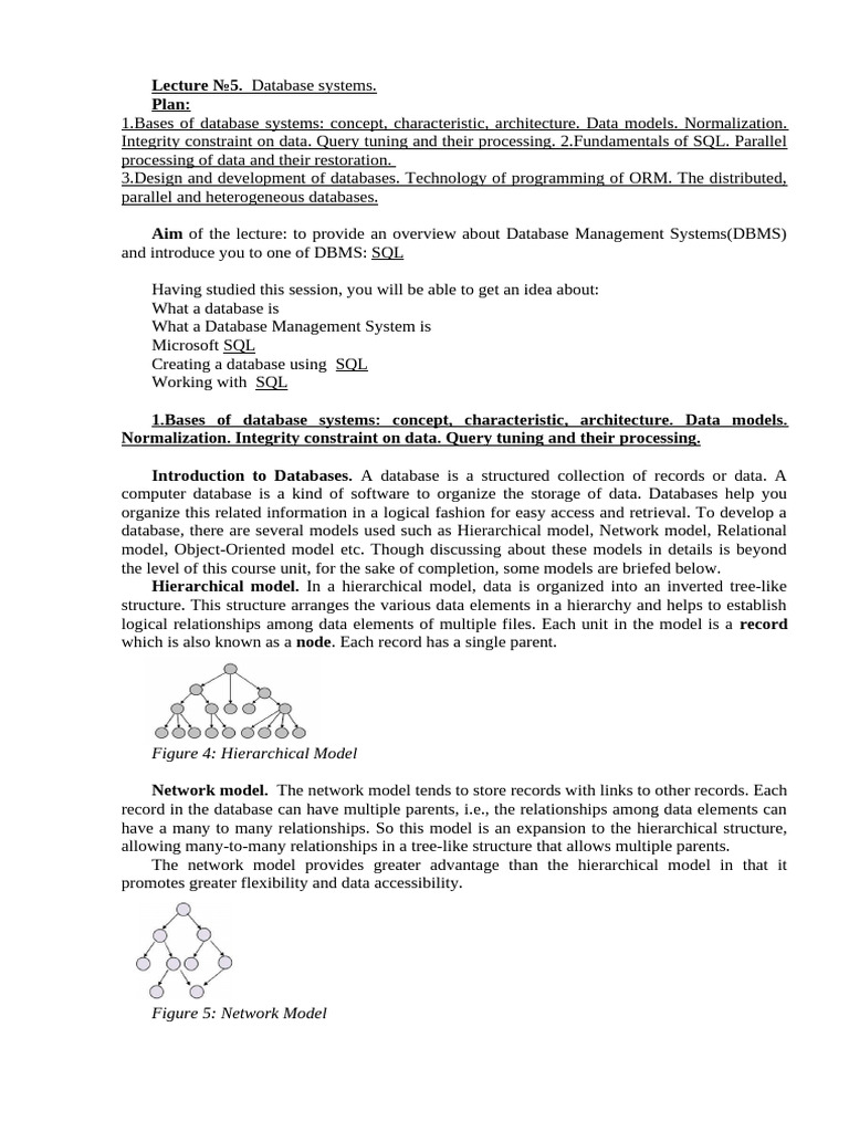 1.Bases of database systems: concept, characteristic, architecture. Data models. Normalization.