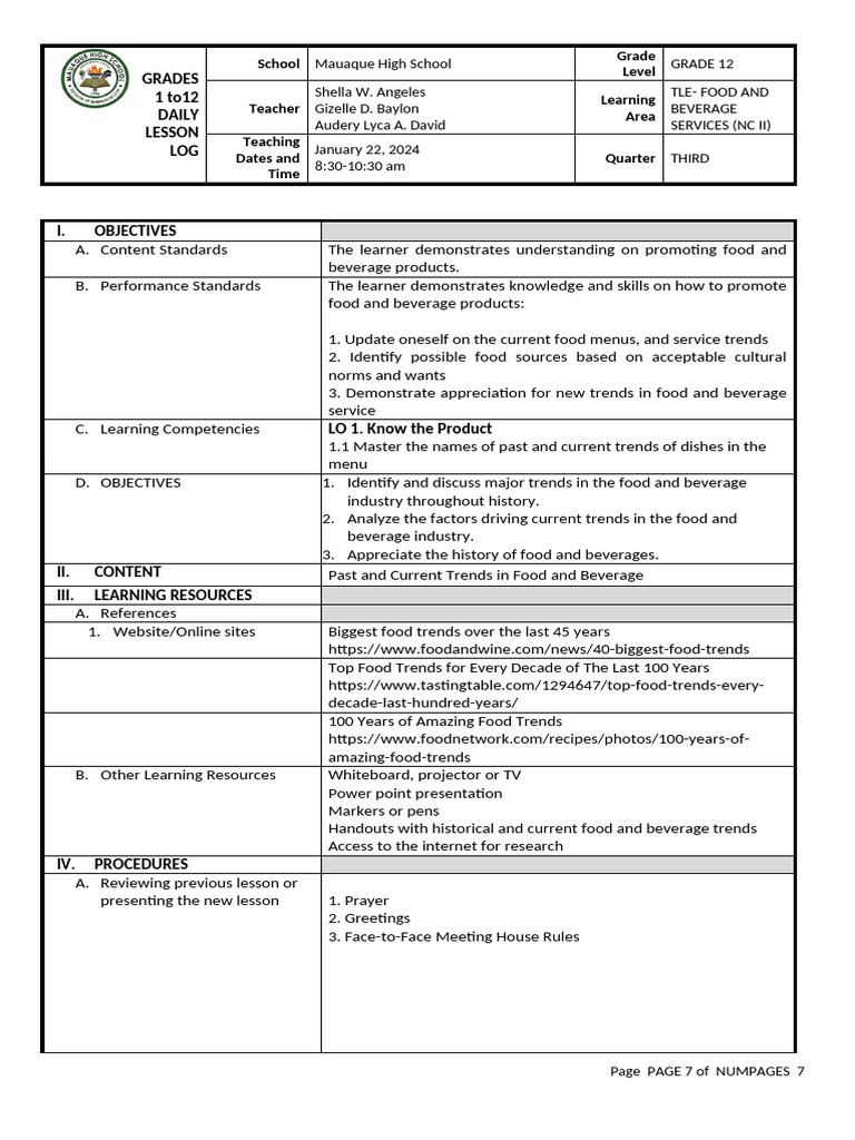 1 to12 Shella W. Angeles TLE- FOOD AND