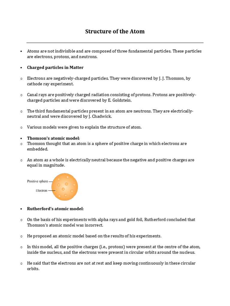 o In this model, all the positive charges (i.e., protons) were present at the centre of the atom,