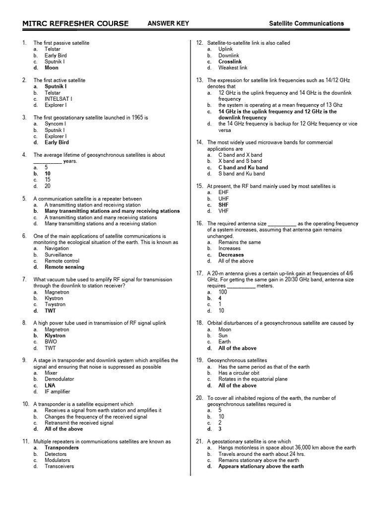 MITRC REFRESHER COURSE ANSWER KEY Satellite Communications