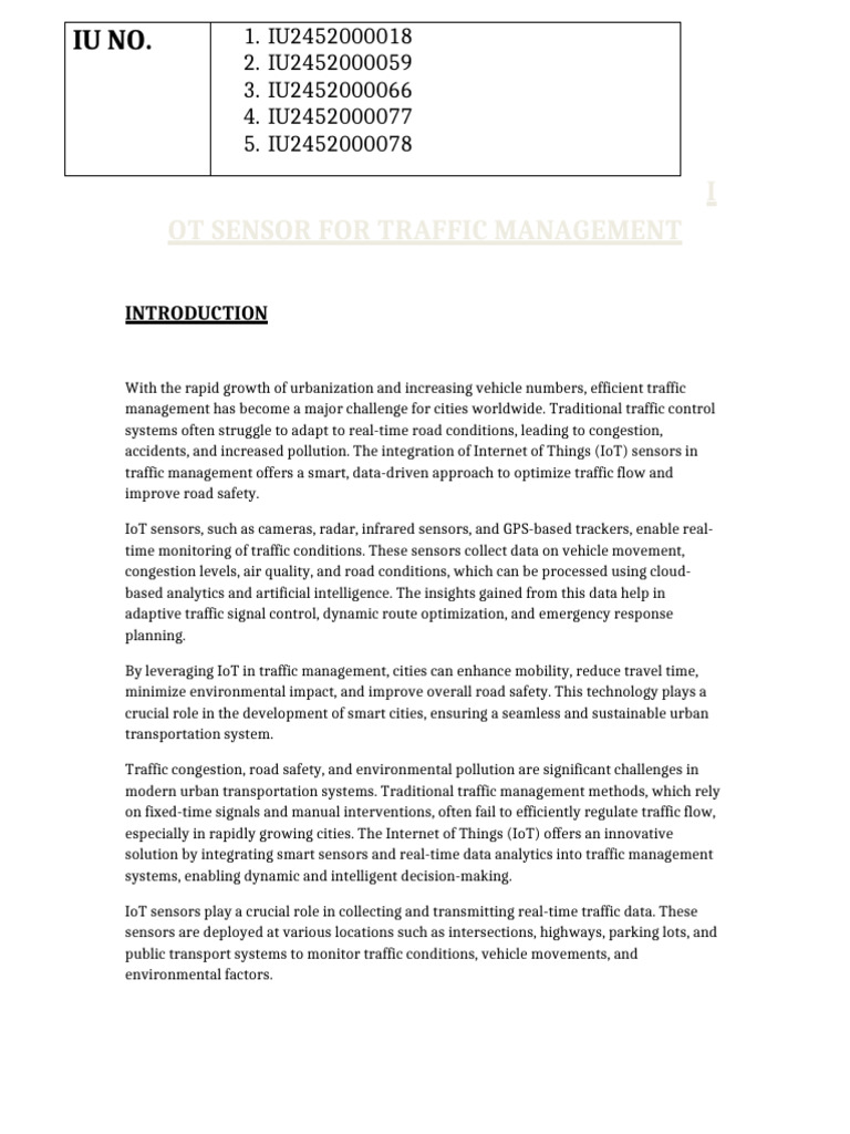 accidents, and increased pollution. The integration of Internet of Things (IoT) sensors in