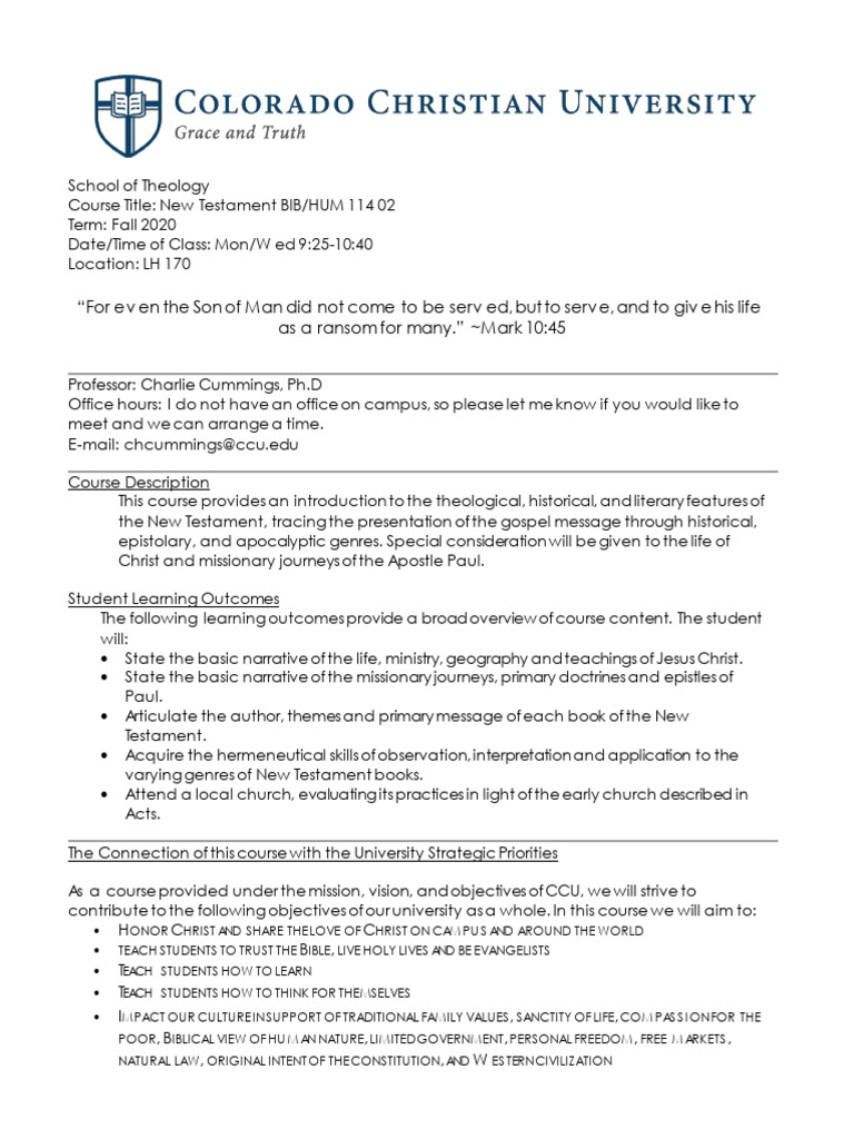 remainder of syllabus, including course schedule, to understand the nature and content of this