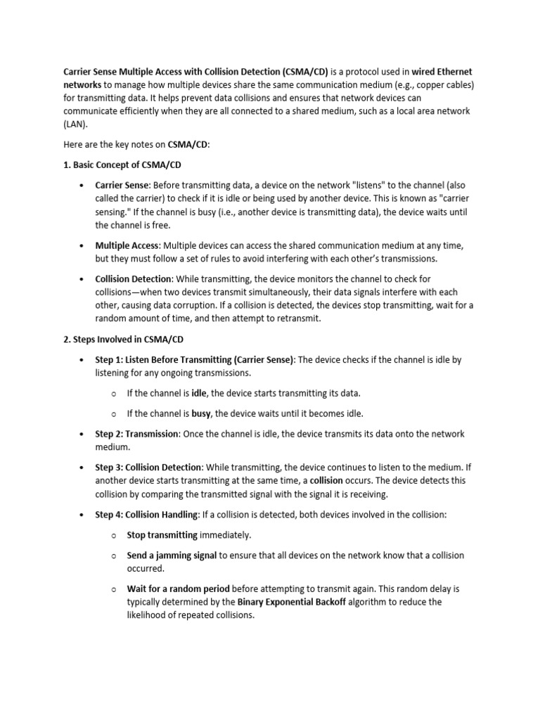• Collision Detection: CSMA/CD is designed to minimize the impact of collisions by detecting them