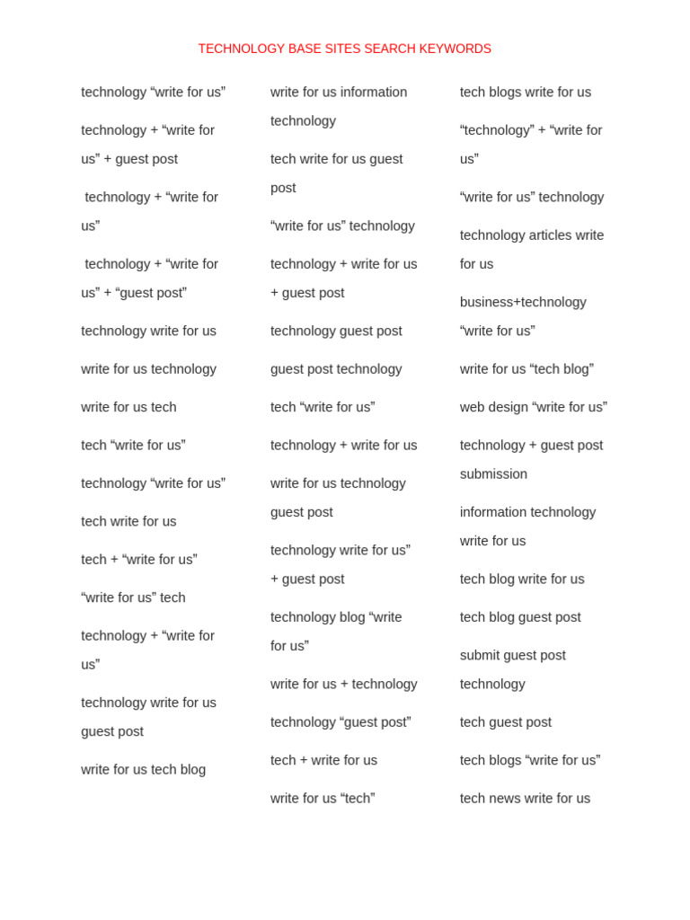 TECHNOLOGY BASE SITES SEARCH KEYWORDS