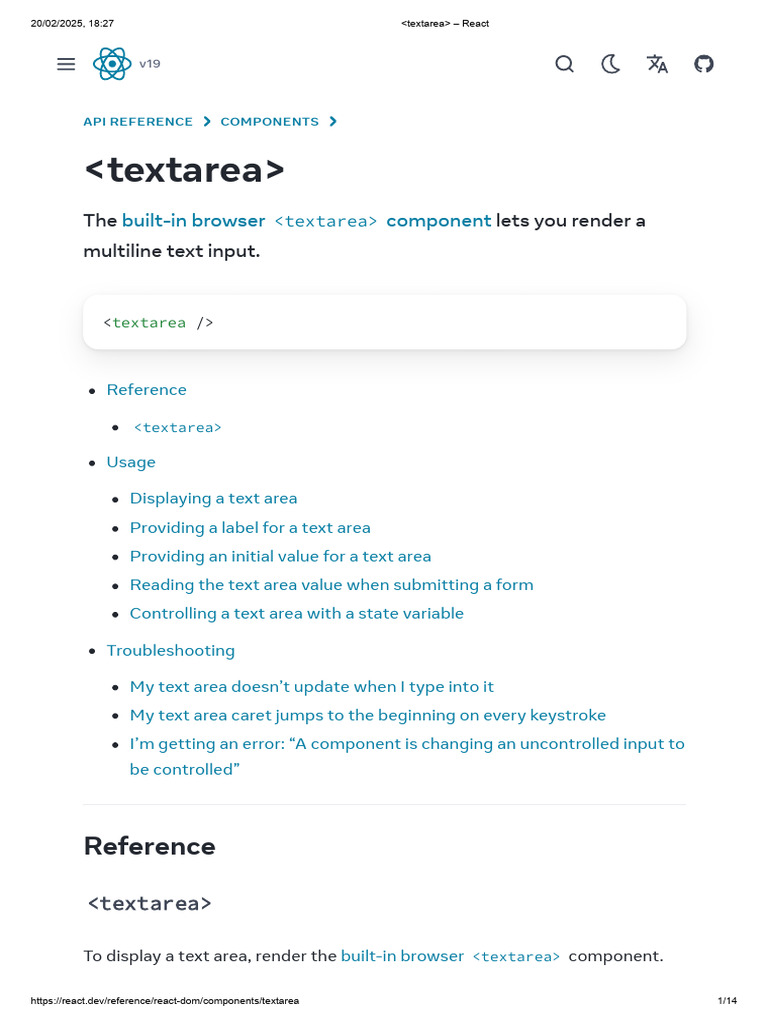https://react.dev/reference/react-dom/components/textarea 14/14