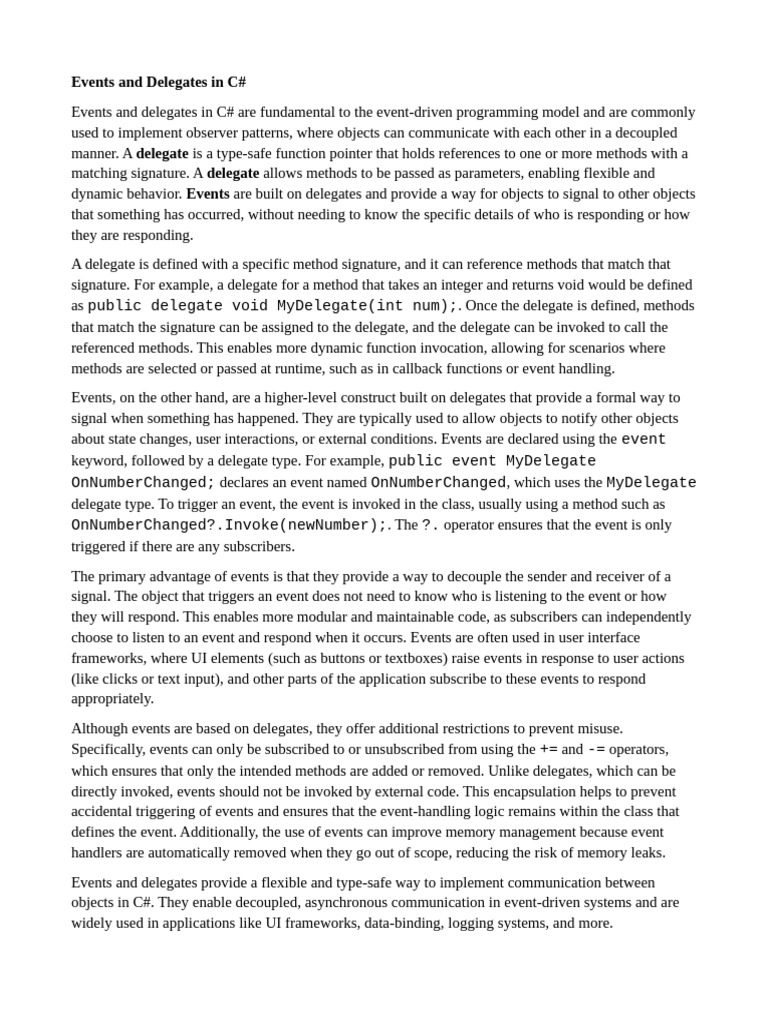 Understanding how to use delegates and events effectively allows developers to create responsive,