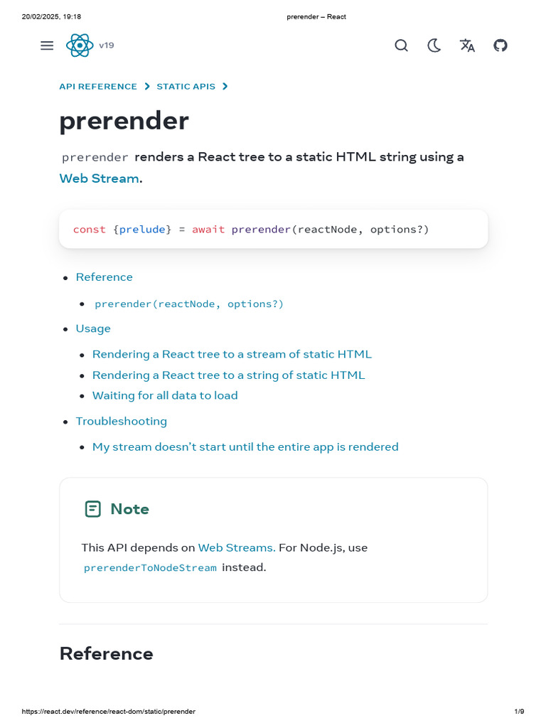 https://react.dev/reference/react-dom/static/prerender 9/9