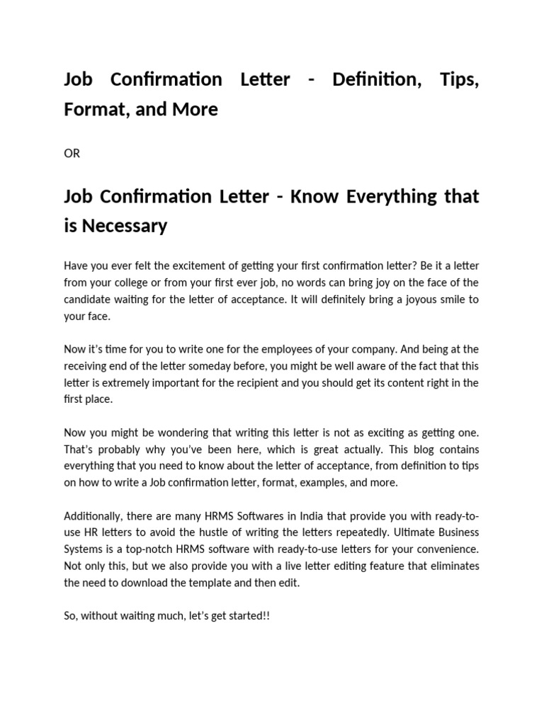 Meta Description - A Confirmation Letter is issued by the company to the employee