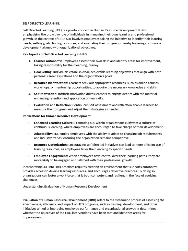 Self-Directed Learning (SDL) is a pivotal concept in Human Resource Development (HRD),