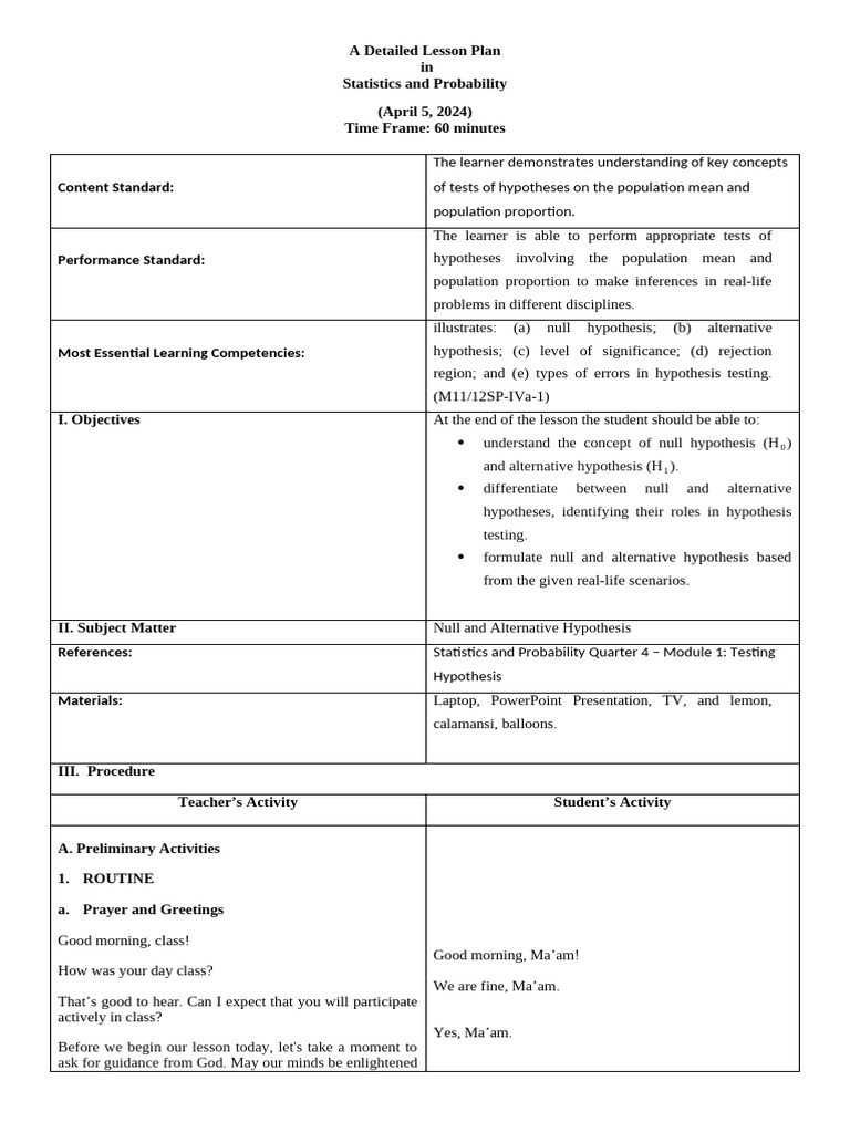 Most Essential Learning Competencies: hypothesis; (c) level of significance; (d) rejection