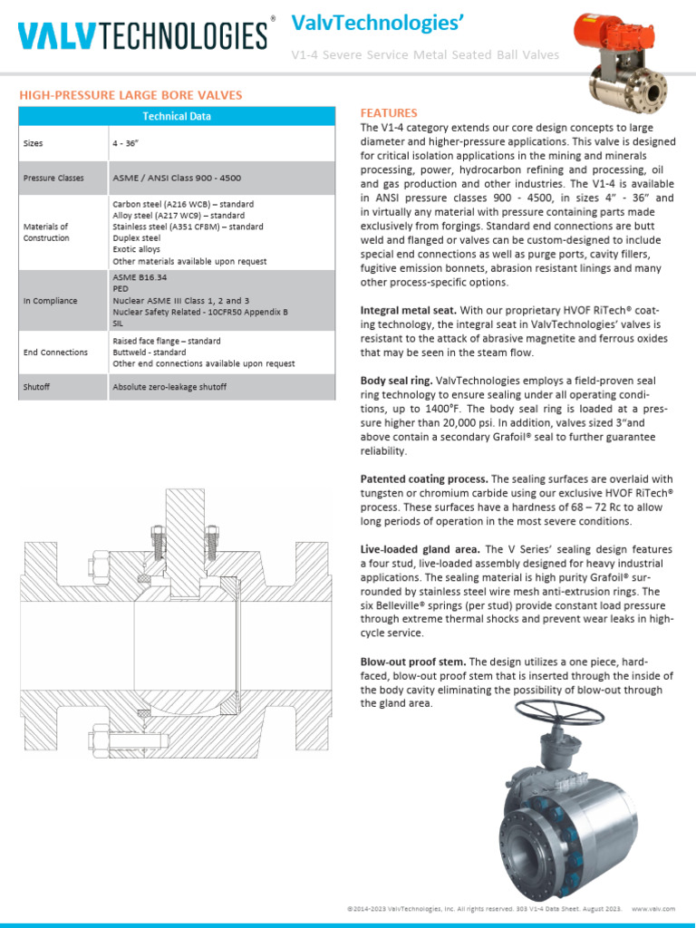 ©2014-2023 ValvTechnologies, Inc. All rights reserved. 303 V1-4 Data Sheet. August 2023. www.valv.com