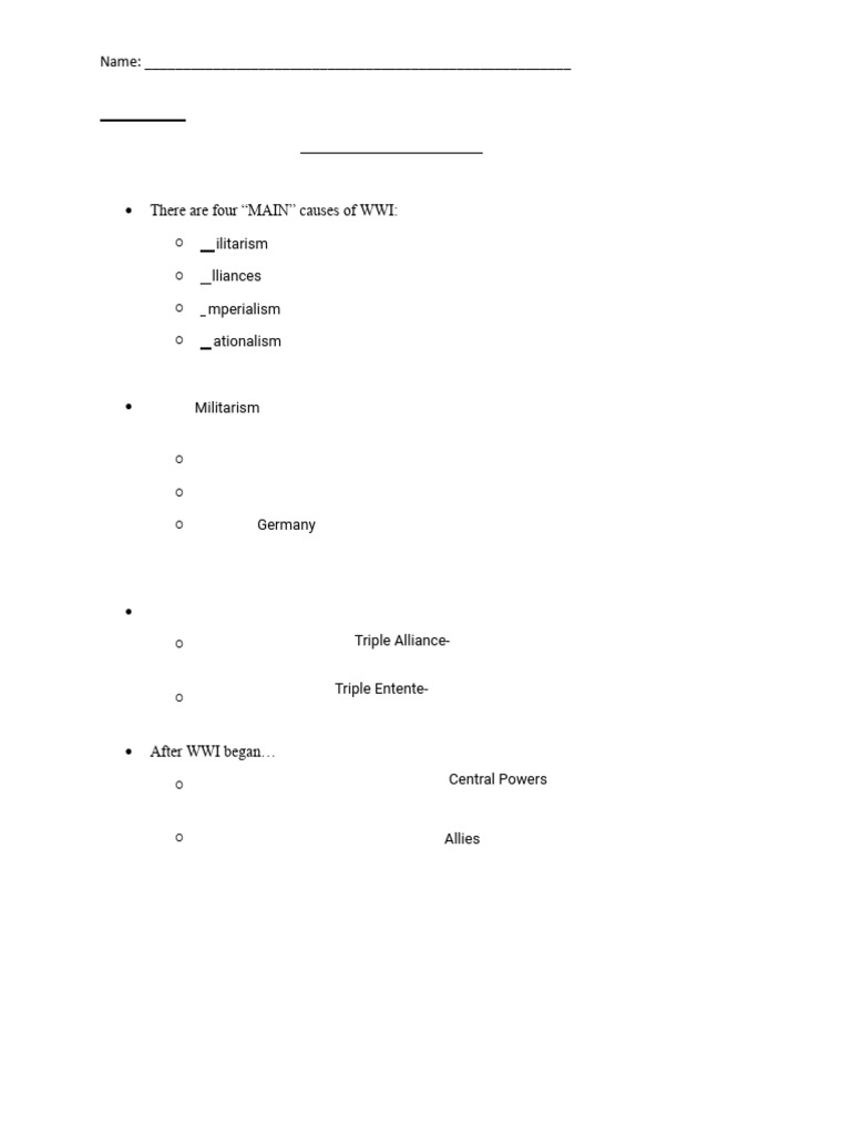 • There are four “MAIN” causes of WWI: