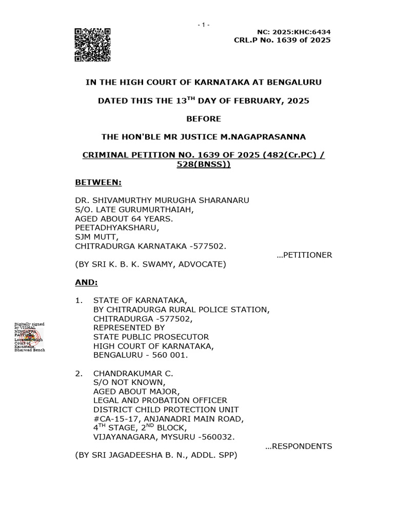 CRIMINAL PETITION NO. 1639 OF 2025 (482(Cr.PC) /