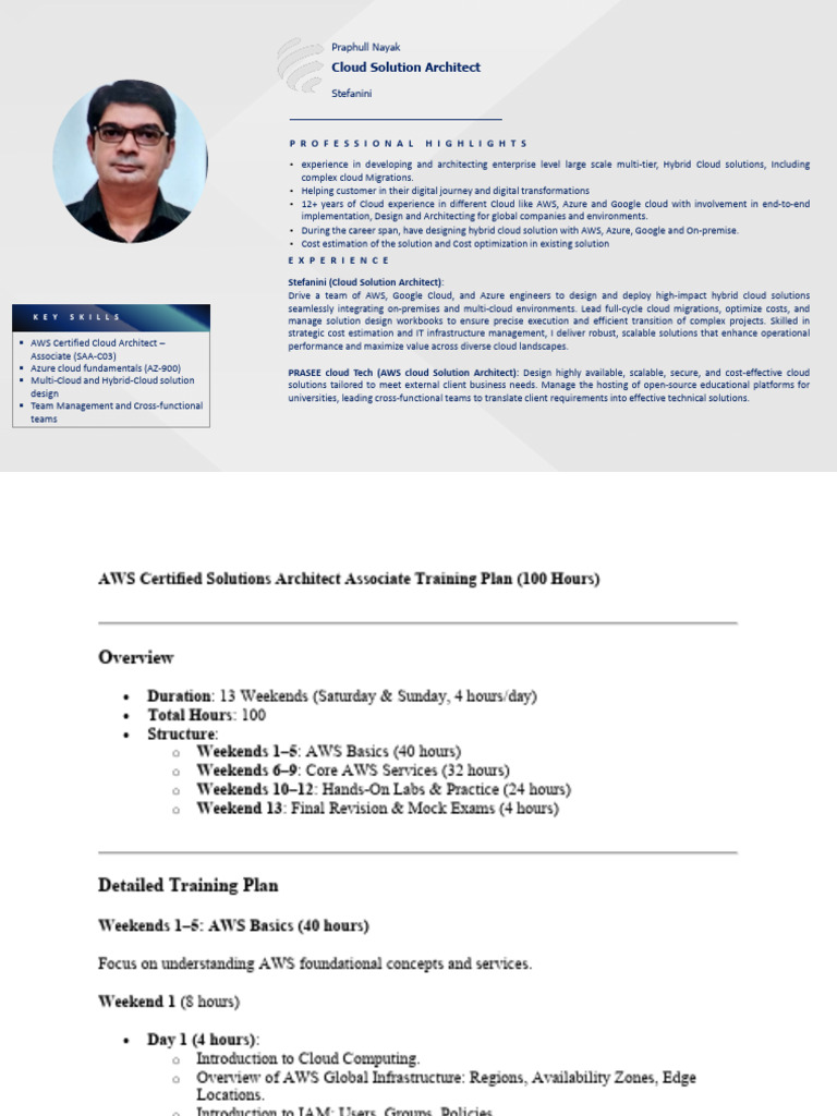 • 12+ years of Cloud experience in different Cloud like AWS, Azure and Google cloud with involvement in end-to-end