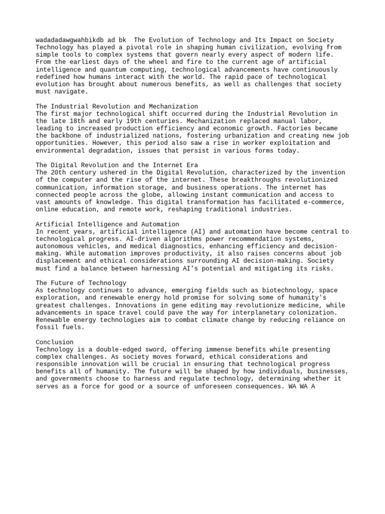 wadadadawgwahbikdb ad bk The Evolution of Technology and Its Impact on Society