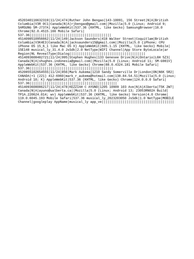 4514098510956662|11/24|149|Jackson Saunders|418 Walker Street|Coquitlam|British