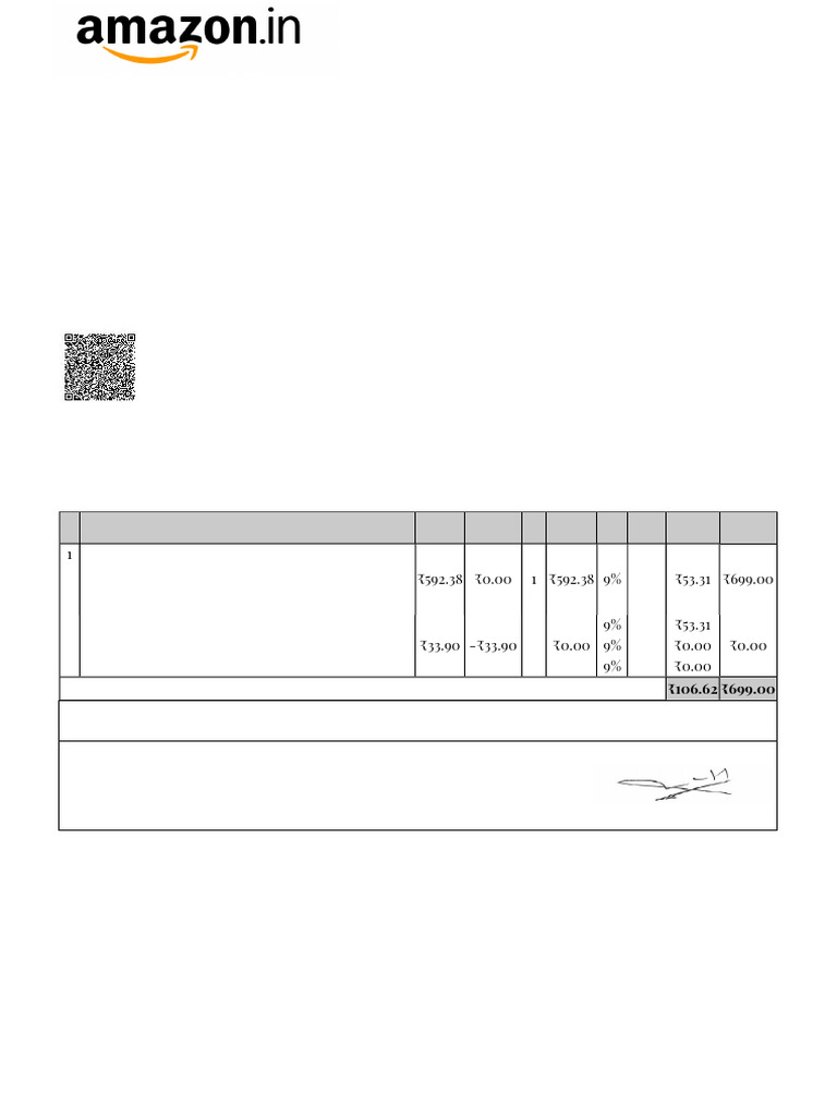 Shipping Charges ₹33.90 -₹33.90 ₹0.00 9% CGST ₹0.00 ₹0.00