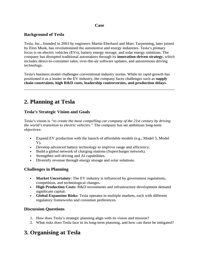 1. How does Tesla’s strategic planning align with its vision and mission?