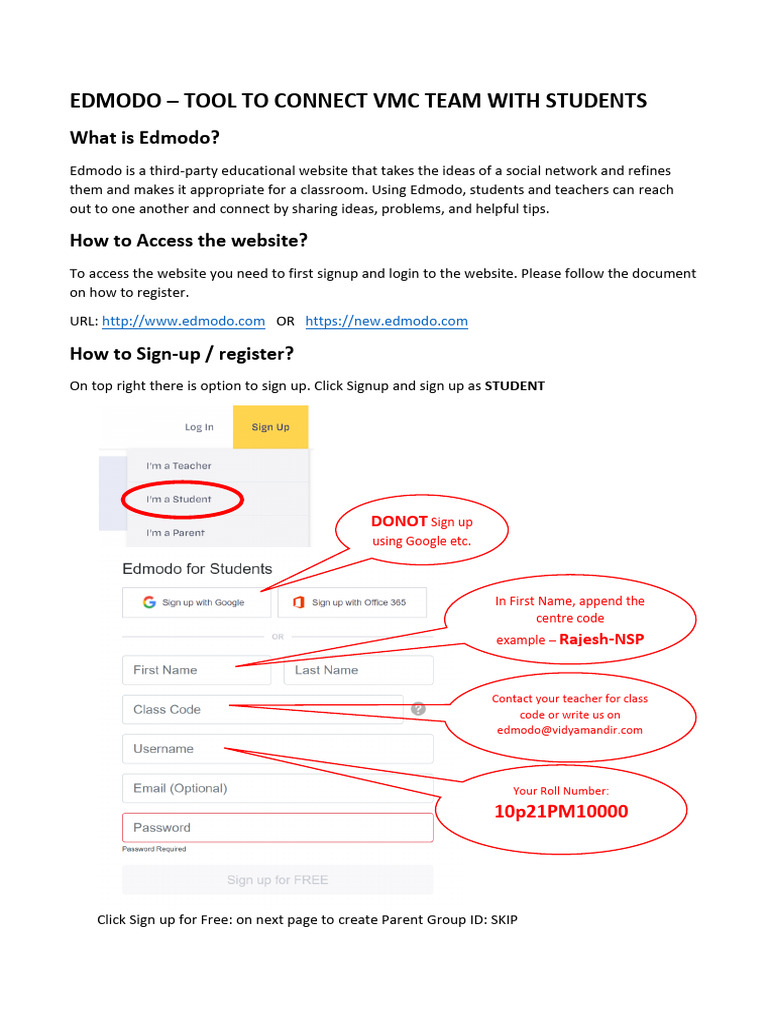 FOR ANY SUPPORT EMAIL US ON: edmodo@vidyamandir.com