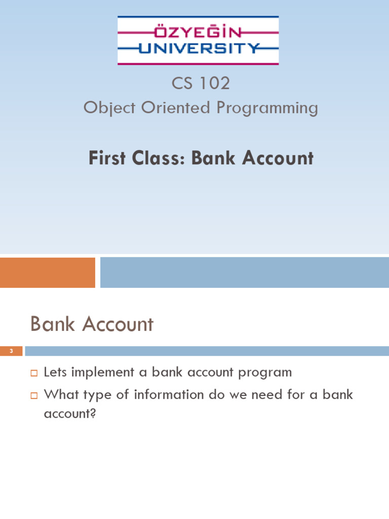 Ozyegin University - CS 102 - Object Oriented Programming Creating Objects” Lecture Notes from