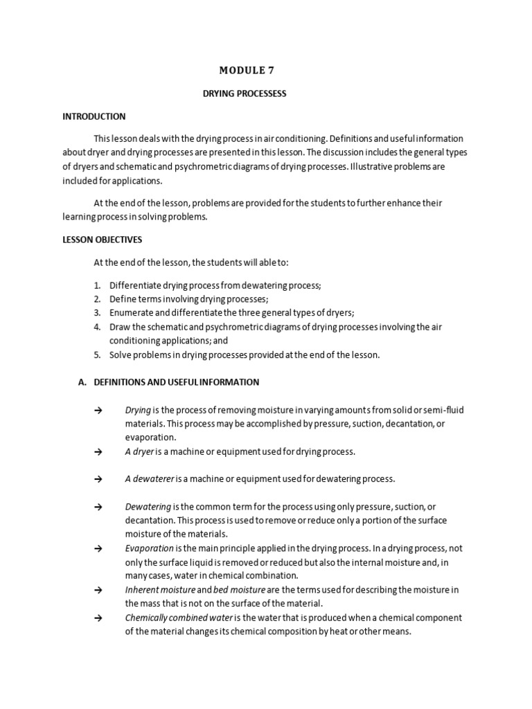 about dryer and drying processes are presented in this lesson. The discussion includes the general types
