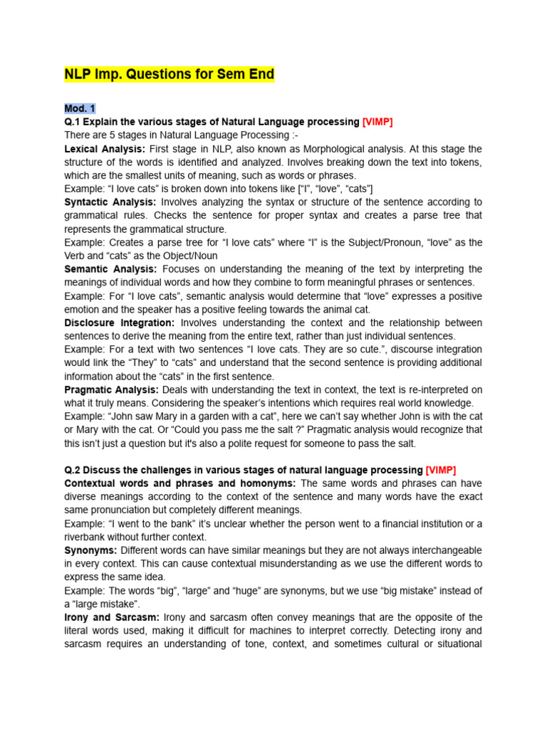 Q.1 Explain the various stages of Natural Language processing [VIMP]