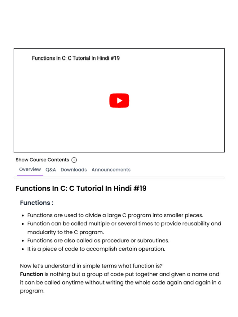 Functions In C: C Tutorial In Hindi #19