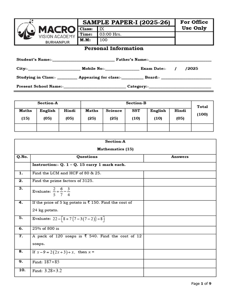 City:-__________________________ Mobile No:-_________________ Exam Date:- / /2025