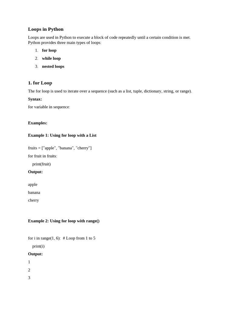 Python provides different types of loops to iterate through a sequence of elements or execute code