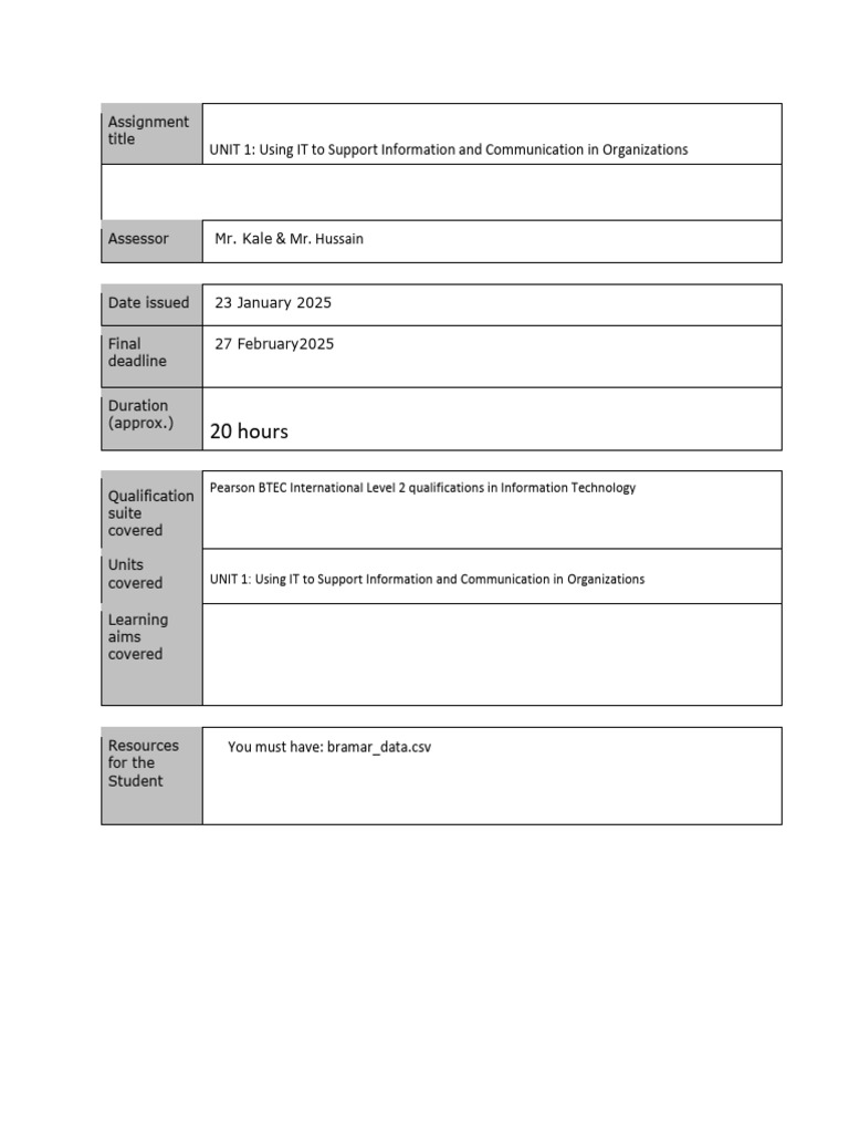 When completing your report, you should draw on your knowledge of IT and data